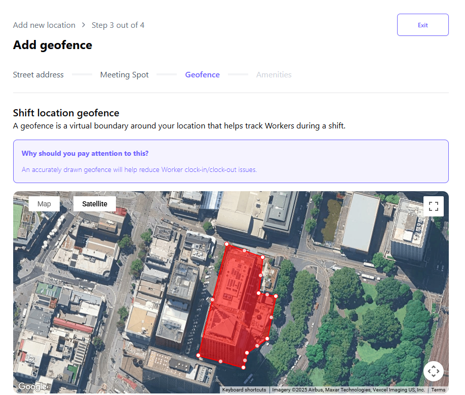 - Geofence - you need to be precise because the clock-in and clock-out of workers will be done with it. You can shape it at your convenience.