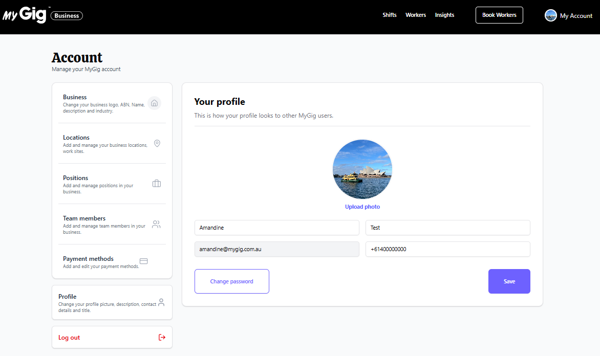 NB: Please note that your email address cannot be changed as it serves as your unique user ID. Also, you're currently viewing your personal user profile, not the business profile — any changes made here will only affect your individual account and will not impact your business information.