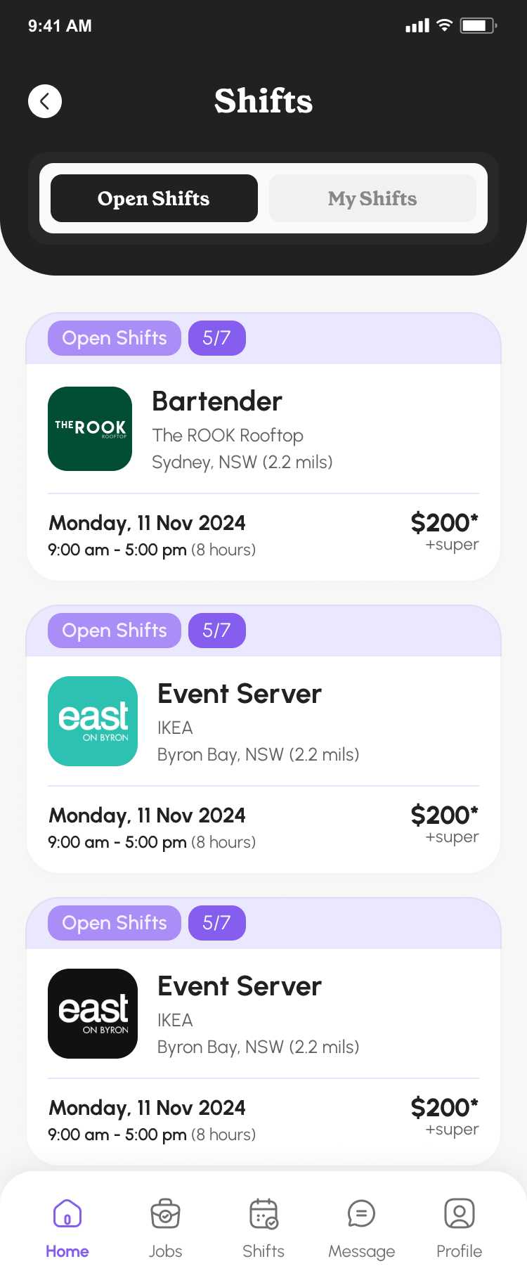 - Some shifts are open for applications: tap Apply and your request will be sent to the business.